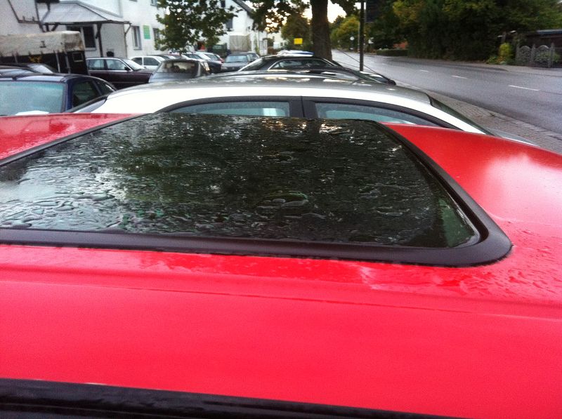 Kofferraum aufgemacht und mir kam Wasser aus dem Deckel entgegen. Zudem war der Kofferraum unter den beiden Teppichen ein Schwimmbad.