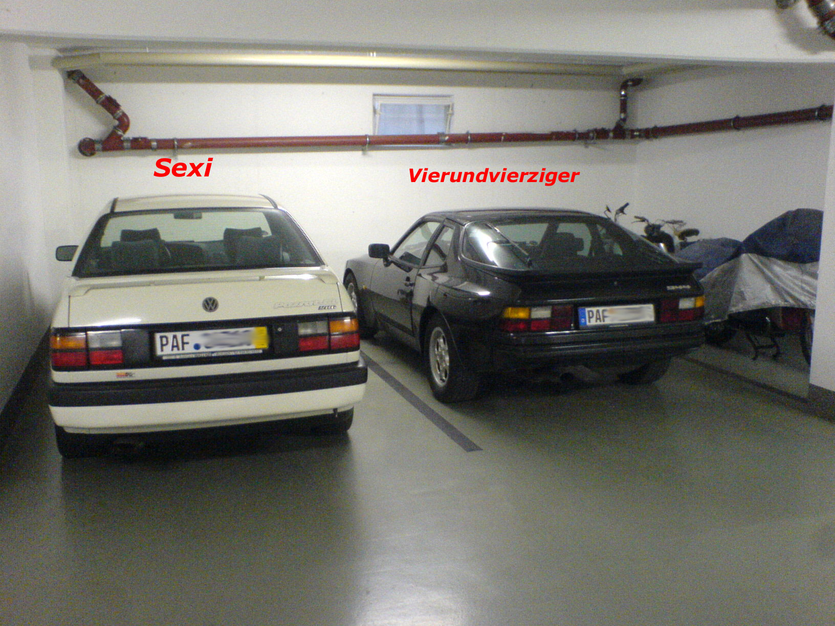 Der Graue "Vierundvierziger" ist ein 1986er 8-Ventiler mit original 120 kW/163. 1999 von einem der Vorbesitzer bei Porsche mit einem originalen G-Kat umgerüstet; seitdem 114 kW/155 PS. Farbe ist Graphitmetallic mit innen Burgund Nadelstreifen.