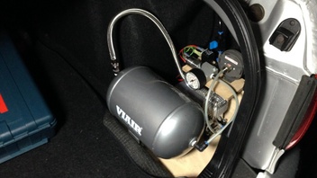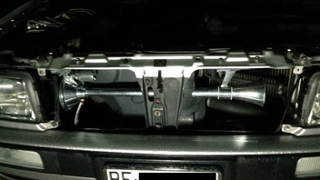 Sowas? Das IST ein LKW-Horn. 12V Kompressor und Druckspeicher hab' ich im Kofferraum ![]()