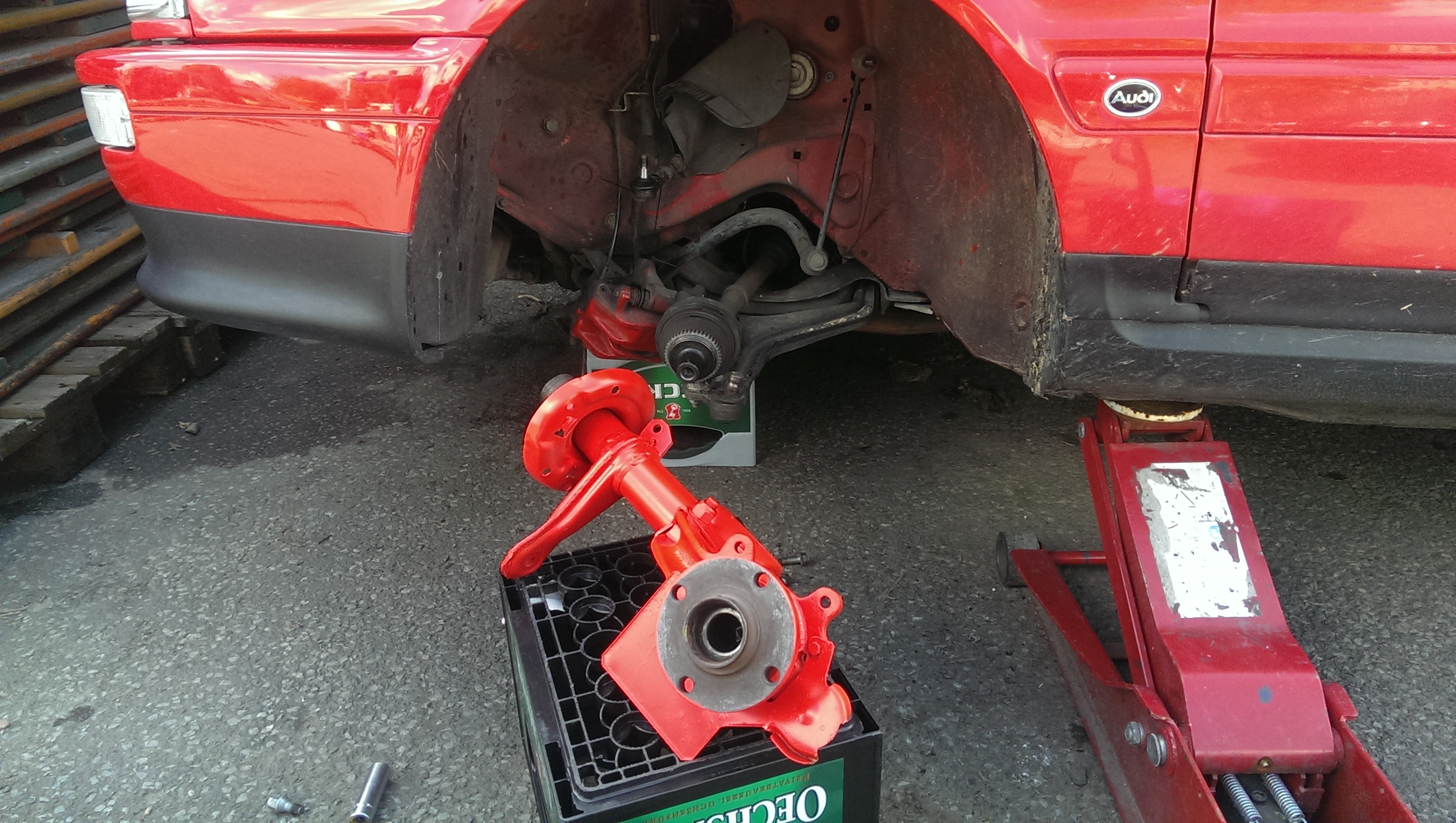 Nachdem am Cabrio der Querlenker gebrochen ist ( Vorbesitzer hat weiß der Geier, für an Zubehörschrott eingebaut), gestern wieder ori. Querlenker mit neuen Lagern, Traggelenken, Stoßdämpfern, Koppelstangen und Spurstangen eingebaut....
