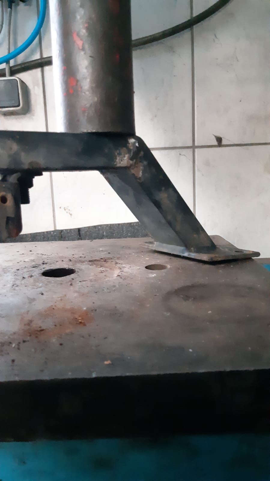 Dann schneidest du dein Formrohr auf Gehrung (musst halt etwas rechnen im Idealfall), und kannst es relativ Verzugarm auf deiner Schablone festschweißen. Dann noch ein Halter für die Drehmomentstütze dran, eine Lasche für das Blech von oben, und unten irgendwas, wo du den Kabelbaum halten kannst (können Laschen sein, Löcher mit Kabelbindern durch, oder Ringösen mit Gewinde...). -