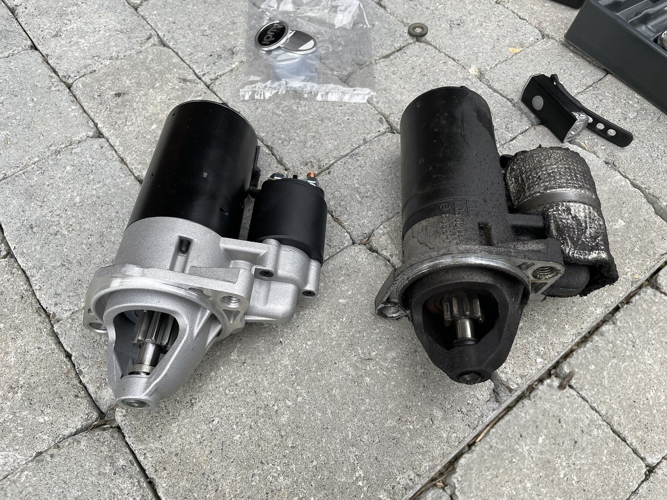 2. Neuer Starter (Hella, überholt) eingebaut. Wunderbar, wie schnell er wieder dreht beim Starten. Den alten Starter werde ich überholen und an Lager legen.