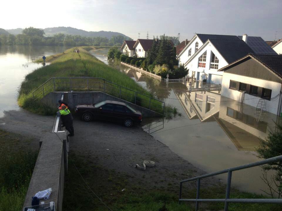 Jetzt ist das wasser schon vom feld auf die straße gelaufen also ca 2-3 m gestiegen