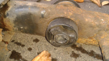 Auf den Bild ist gut zu erkennen wo der durch ist. (da wo bissel Rost davon hängt)