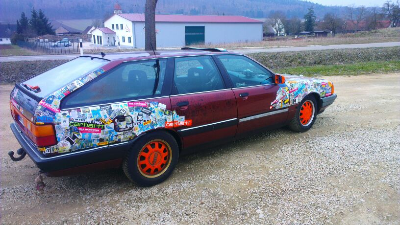 oh da hat aber einer übertrieben mti de stickern, kotflügel geht ja noch aber die seitenteile is wirklich zu viel