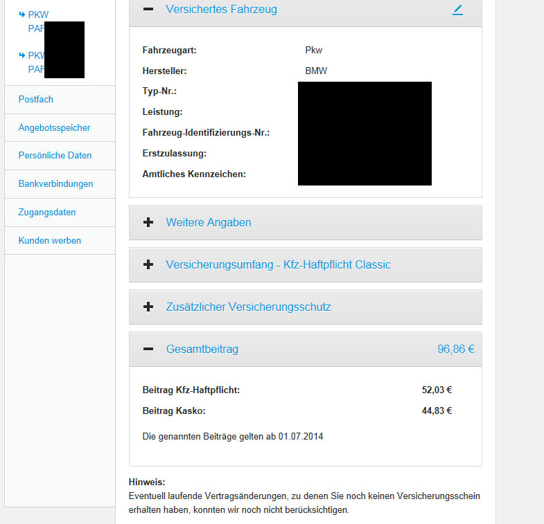 Rechnung wurde mir am 16.6.14 zugestellt. 968,48€ bei 100% Prämie.