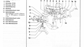• Beim 4-Zylinder VW Motor sitzt der Thermostat unten an der Wasserpumpe, keine Kabel dran. In dem Stutzen sitzen der Geber für die ECU, der Thermozeitschalter und das Fernthermometer, zumindest bei den VWs, dürfte sich aber nichts nehmen. Das Ventil kann man elektr. messen und die Einspitzzeit auch, die muss je nach Temperatur variieren. Die Werte dafür habe ich aber nicht im Kopf, da muss du die Handbücher befragen.