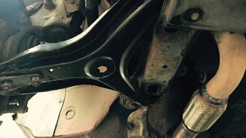 Der Aggregatträger müsste an den Aufnahmen der Querlenker so stark verbogen sein, dass man das mit blosem Auge sehen würde. -