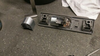 Nachdem dies passiert ist, wird die innere Oberfläche poliert. Der original Reflektor wird nun vorsichtig abgezwickt um die Fassung nicht zu beschädigen und um nicht unnötig Druck auf den Kunststoff auszuüben.
