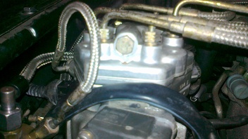 Ich habe mal zwei "schlechte" Fotos hochgeladen, um das Problem zu verdeutlichen. Das erste Bild zeigt den Originalanschluss der dünnen Benzinleitung auf der rechten Seite des Mengenteilers (Motor läuft nicht). Auf dem zweiten Bild sieht man den Anschluss der dünnen Leitung auf der linken Seite des Mengenteilers (Motor läuft).