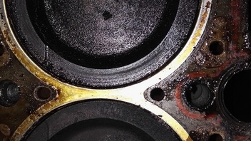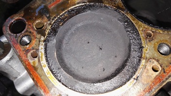 Beim Kolben des 1. Zylinders habe ich aber eine extrem dicke Schicht Ölkohle feststellen müssen, sowohl auf dem Kolben wie am Rand der ZKD und im Brennraum. In der Ausprägung habe ich das noch nicht gesehen!