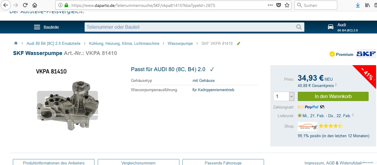 Eine gute Wapu vom Erstausrüster (nehme ich mal an) gibts von SKF mit Versand für 40€.