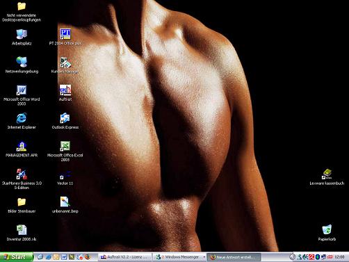 mir gefallen die neuen Designs nicht von den Windoofs, darum der simple alte Standart Desktop ( Ich benuzte übrigens immer noch Windows 95, allerdings ned auf meinem Gutem PC, weil da die neuen Spiele nemme unter Win 95 laufen...leider