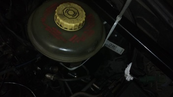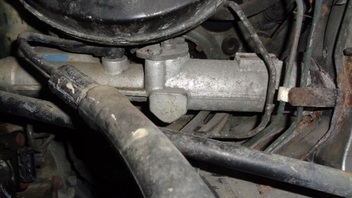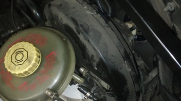 Leider kommt man an die Verschraubung unter dem Bremskraftverstärker nicht dran .