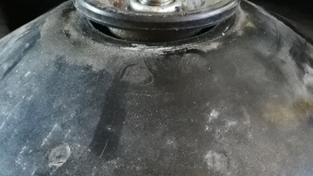 Das ausgebaute Domlager ist übrigens das Alte, noch mit dem intakten Rand.