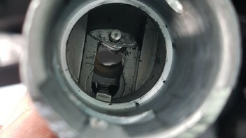 Danach den neuen zylinder hineinschieben fertig. Die Position ist so das die feder wieder durch die bohrung entriegelt werden kann logisch oder vielleicht muss man ja wieder dran -