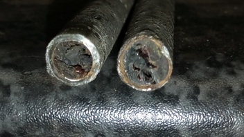 Mich würde mal interessieren welche Leitung das in der Mitte ist , da dort innen im Rohr schwarze Ablagerungen zusehen sind .