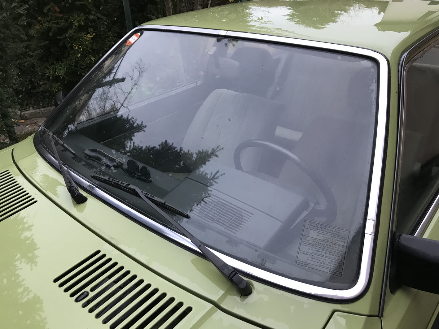 Der ungewöhnlich gute Zustand, besonders der schon von Albert_10v gelobten Karosserie, bringt deutliche Pluspunkte, da teure Karosserie- und Lackierarbeiten wegfallen. Ob das wohlklingende Manilagrün nun eher Erbswurstsuppengrün gleicht und gefällt oder nicht, liegt im Auge des Betrachters. Ich würde es in Kombination mit der ebenfalls grünen Innenausstattung eher schrill nennen. Hier fällt der gute Zustand auf. Wann habe ich zuletzt diese braunen Gummimatten des Fußraums in diesem Zustand gesehen? Oder den makellos anmutenden Himmel. Anscheinend ist es nicht zu dem häufig zu bewunderenden Schimmelbefall gekommen.