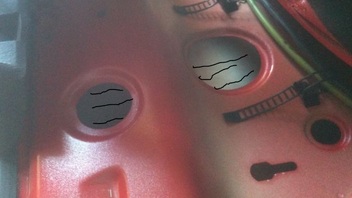 Hab nochmal Bilder angehängt, an den markierten Stellen schwitzt die Karosserie bzw. läuft das Wasser an diesen Stellen runter.