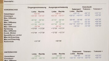 Also haben sie "nochmals" eine Spurvermessung druchgeführt. Hierbei kamen die Werte im Anhang raus: