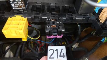 Bei mir fing es nun links im Nebenlenkradraum beim Starten des kalten Motor an, stark zu knistern. Ich hatte dann die Abdeckung dort abgeschraubt und festgestellt das dieses dicke 214-Relais dort die Geräusche von sich gab (man konnte das auch fühlen). Habe das Relais getauscht, allerdings ohne Wirkung. (Wenn der Motor warm ist, endete das Knistern von alleine).
