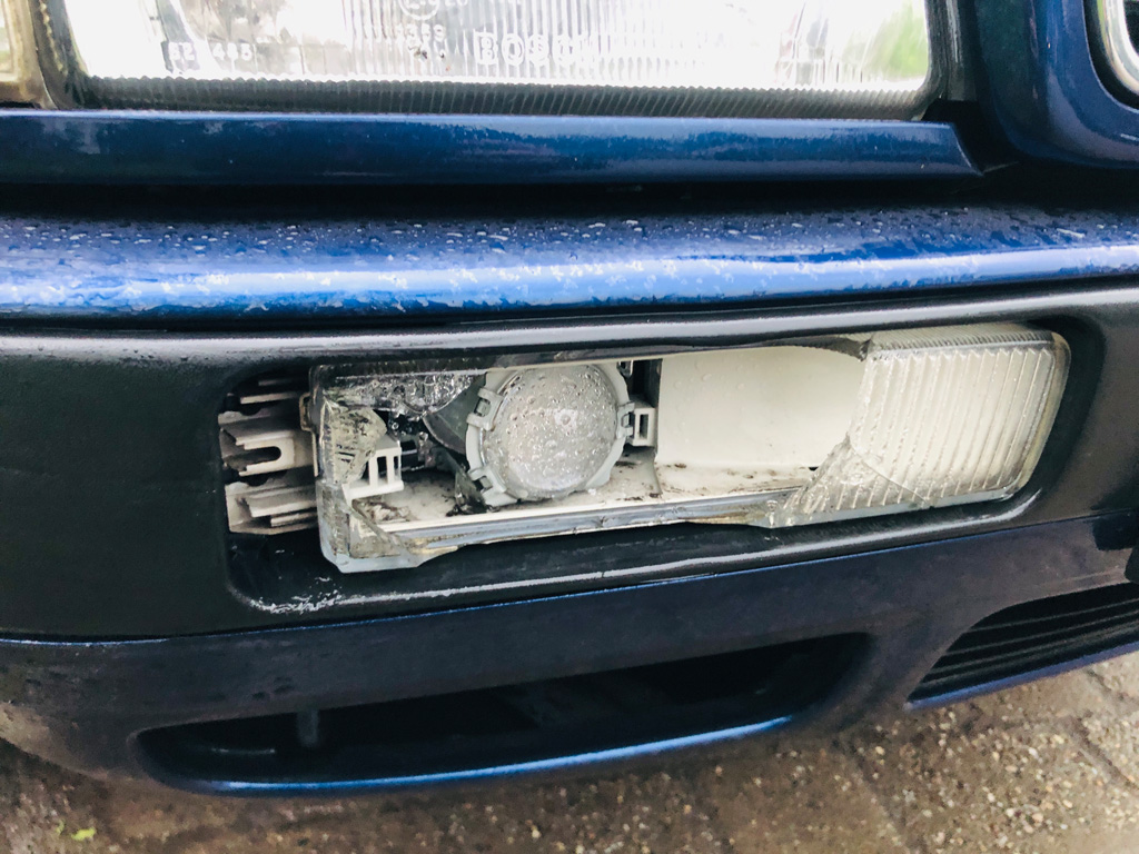 Nebelscheinwerfer kaputt und Abdeckkappe zerbrochen.