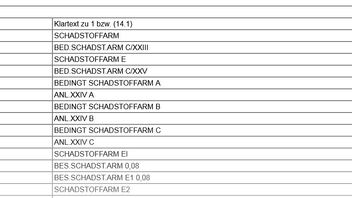 "SCHADSTOFFARM E2" hat die Schlüsselnummer 0414