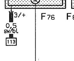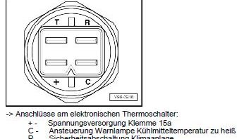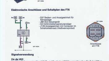 Die Spannungsversorgung für den Thermoschalter F76 ("Multifuzzi") ist die Bordspannung und kommt von Sicherung S6 (5A) über Klemme B15a an der Zentralelektrik auf Klemme 3/+ (schwarz/blaues Kabel 0,5 mm²) am Thermoschalter.