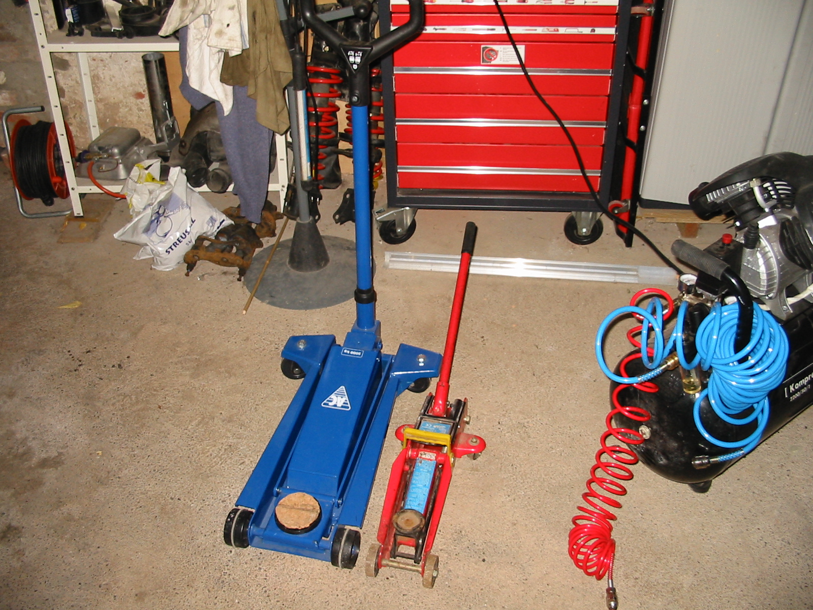Hab mir vor ein paar Tagen einen schniecken neuen Wagenheber zugelegt weil mich das rumgeeiere mit dem Rangierwagenheber langsam genervt hat, mittlerweile musste ich ja bei fast allen Autos hier Bretter unter die Räder packen damit ich den Wagenheber überhaupt drunter bekommen hab und besonders viel Platz hatte ich dann trotzdem nicht da die Dinger auch nicht so hoch gehen.