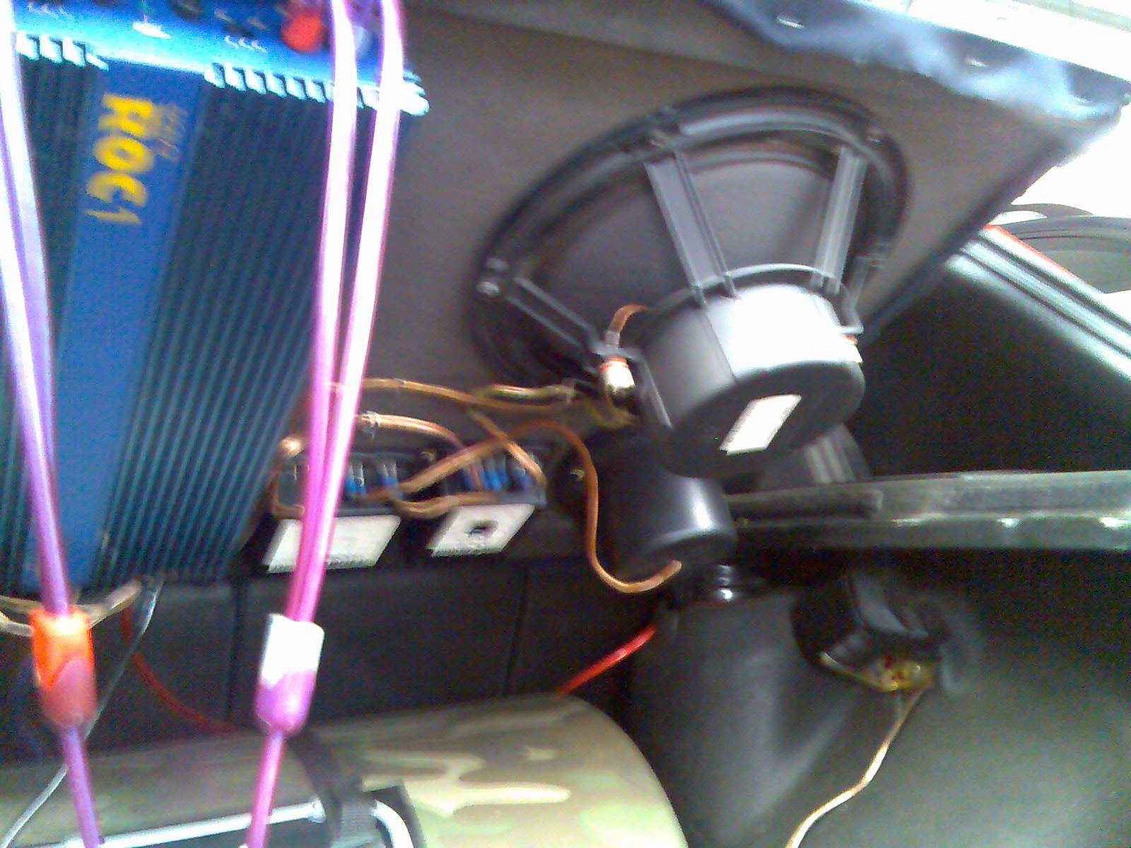 Jo, die Kiste war eh der Knüller... 80er Türgriffe reingeschweißt und schlechte Rostvorsorge getroffen, da hats übelste Blasen unterm Lack geworfen, Die Hutablage mit 2 25er Subs, 2 13er MTs und 4 HTs, Die Federn ohne Vorspannung, und erst die unisolierten Kabel zur Zubehörhupe im Motorraum.