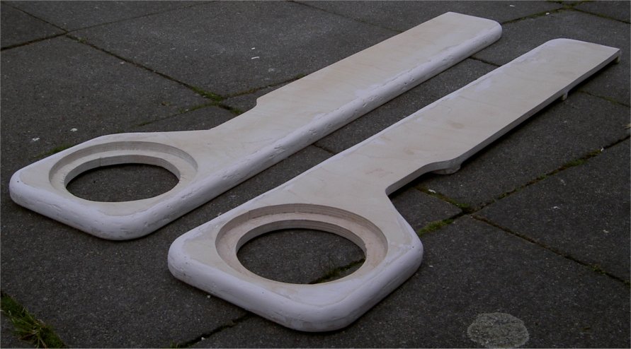 Und die 2 Brettchen mit dem Zimmermann'schen Fichtenmoped zuzuschnitzen sollte ja kein Problem sein, oder? das kleine Brettchen im letzten Bild gehört noch auf die Rückseite (is 6mm Multiplex), dass du das Ding zur Türpappe hin abdichten kannst.