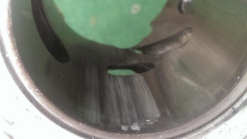 Das sieht eher aus als wenn das eine Kurbelwellenlager, das angeblich schon gerasselt hat, die Ursache für das Desaster ist, die Kurbelwelle ist radial gekippt, hat den Kolben seitlich mit Laufbuchse verkantet und diese ist in Folge gebrochen.