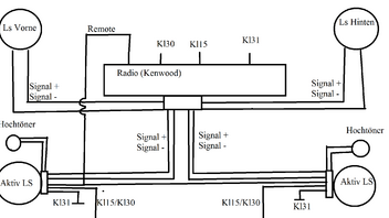 Und die Lautsprecher Verkabelung. Und da harkt es schon. Für vorne ist