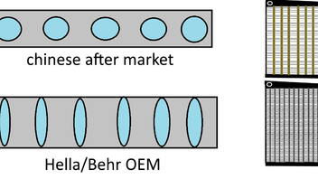 Der verlinkte Kühler ist genau das Gegenteil eines Originalkühlers. Anbei nochmal eine Skizze was konstruktiv die Hauptunterschiede sind, und warum diese günstigen Dinger schlechter kühlen.