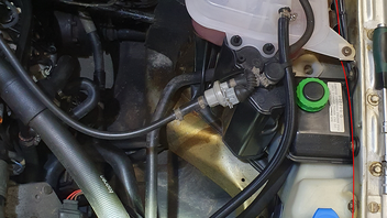 Servo und Wischwasserbehälter hatte ich abgeschraubt und das Kabel dahinter gelegt. -