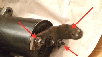 2. Der neue Anlasser ist zwar drin und der Start gelingt auch ohne jegliches Mucken, allerdings habe ich noch folgendes Problem: Der alte Anlasser war noch der originale von Bosch und hatte an der Vorderseite noch so eine Stütze (siehe Bild unten), die am Block festgeschraubt war. Der neue ist von ATL (zu viel wollte ich nicht investieren, ich hoffe, das rächt sich jetzt nicht) und scheint 0,5cm länger zu sein, als das Original. Sprich: Die Stütze passt ohne Anpassung nicht hin. Zu allem Überfluss sind auch diese beiden winzigen Bolzen, die die Stütze halten, am neuen Anlasser gar nicht vorhanden. Braucht es das Teil unbedingt? Aktuell habe ich es nicht verbaut. Bei den zwei kleinen Schrauben kann das ja nicht viel halten, oder?