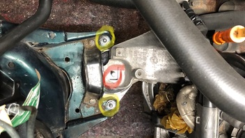 Ich bin grade dabei die beiden Motorlager (Hydrolager) zu tauschen, da beide auf der Unterseite schwarz sind, was darauf hindeutet, dass die auslaufen.