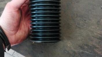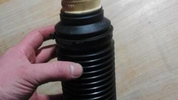 Anschlagpuffer und Staubkappen für die Vorderachse von Sachs gekauft. Die Anschlagpuffer per Dremel mit Schleifaufsatz von 23 auf 25mm aufgeschliffen, bis sie schön straff auf die Kolbenstange gingen. Die Staubmanschette passte leider nicht über die Überwurfmutter der Dämpferpatrone. Daher habe ich sie nach den obersten 3 Windungen abgeschnitten. Sie passte jedoch perfekt in die Staubmanschette (Sachs) eines VW Caddys ( bj. 2014, 2,0 TDI, Allrad). Habe vorsichthalber noch etwas Kleber zwischen gemacht und sie dann mit einen Kabelbinder Fixiert. Anschließend auf Länge geschnitten.