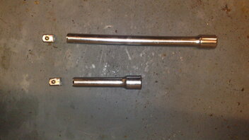 Die längere ging beim Aufschrauben der Zentralschraube an der Antriebswelle drauf und die kurze beim Sattelträger. Das waren so 0815-Teile von diesen billig ALDI-Ratschensets.